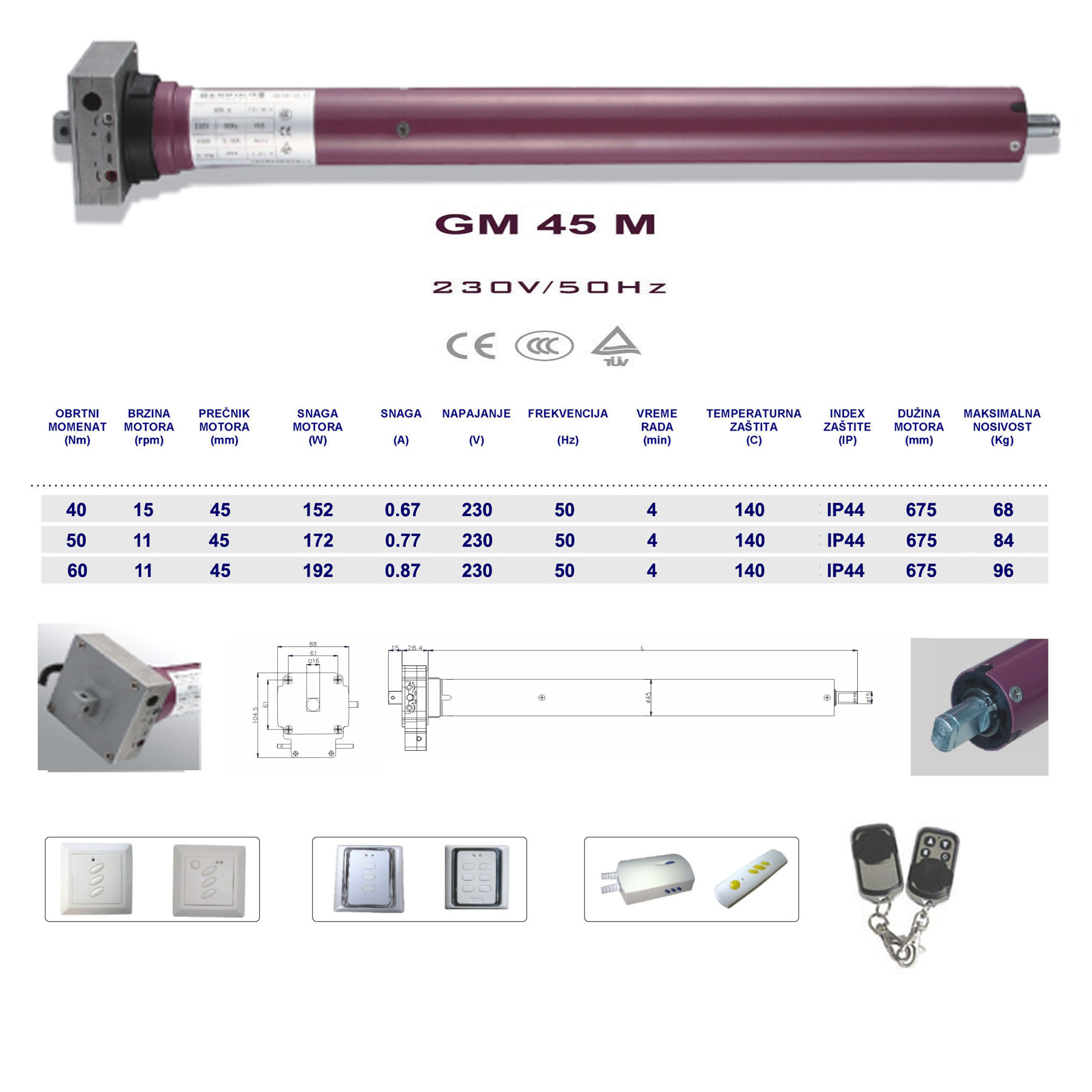 Motori sa reduktorom imaju mogučnost ručnog podizanja u slučaju nestanka struje. Moraju se povezati sa prekidačem koji se stavlja na ili u zid ,  koji je istovremeno risiver za daljinski upravljač.Kod ovih motora podizanje , spuštanje i zaustavljanje može biti regulisano i preko prekidača i preko daljinskog upravljača a i ručno .Ugradjuju se u čeličnu osmougaonu oklagiju fi 60 fi 70 ili kružnu fi 70 .